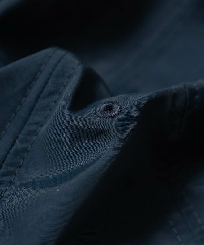 なぜコットンとナイロンという異素材を使用しているかというと「コットンとナイロンの、良いとこ取り」を実現するため。一般的な64クロスは、コットンとナイロンの繊維を垂直方向に混紡した構造で、生地が水に濡れると、コットンがその水分を吸い取って膨張するため、生地全体の密度が上がり、水や風を通しにくくします。水分が乾くと、繊維の間に隙間が生まれて通気性が良くなります。