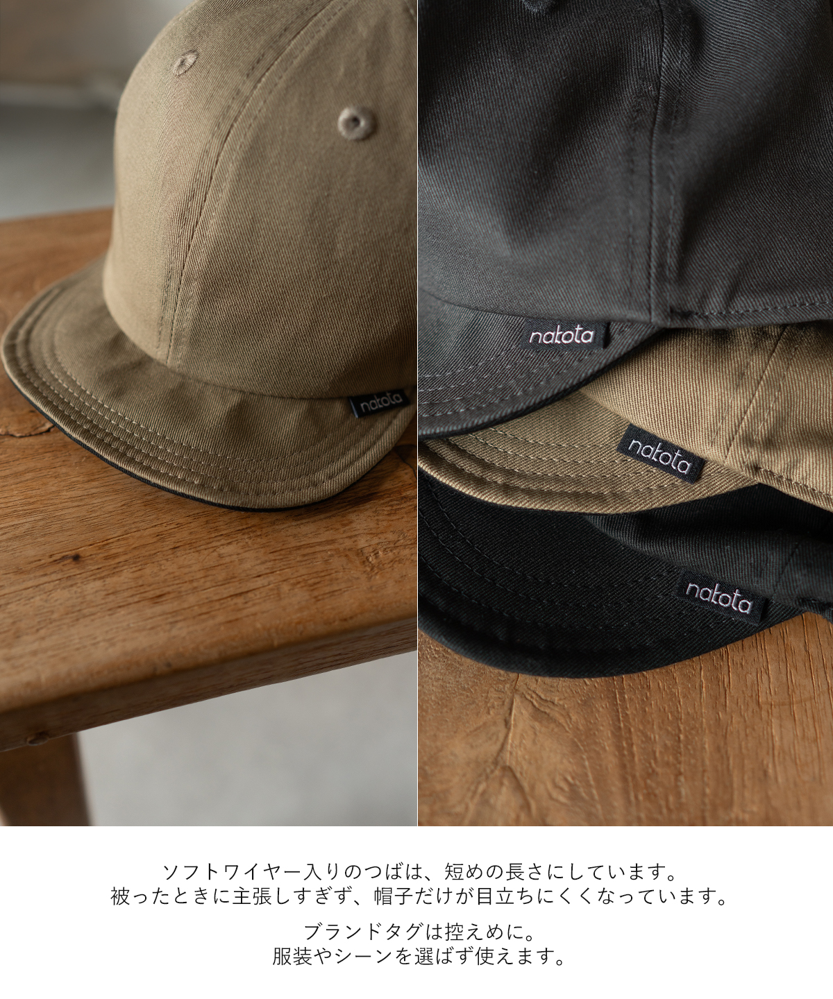 つばは短めで主張せず、