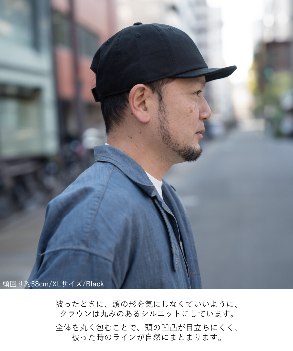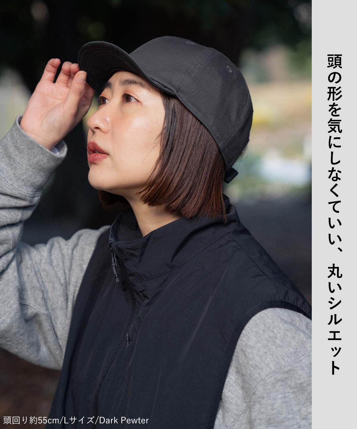 丸みのあるシルエットが頭の形に添い、