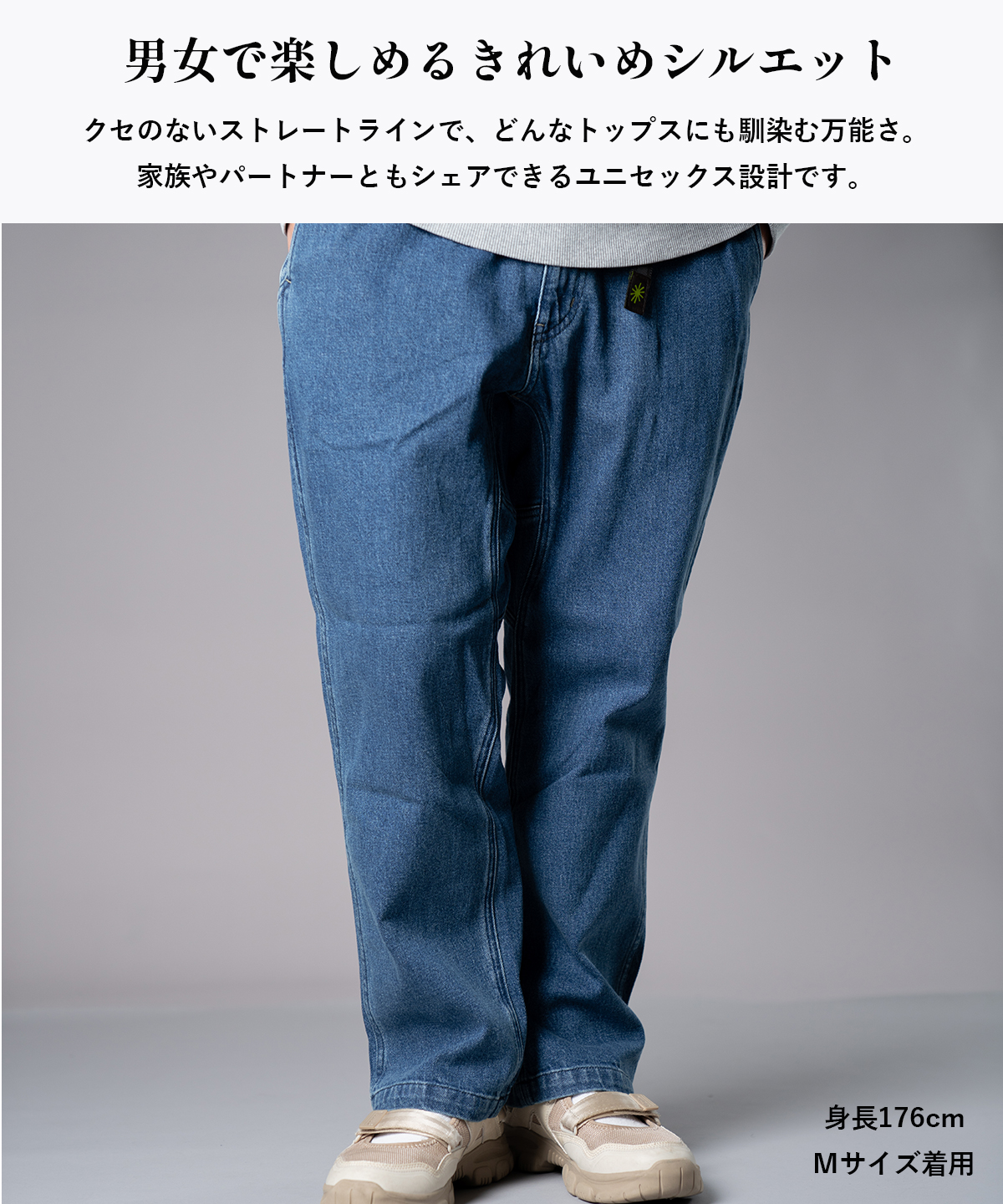ユニセックスで使えて、家族とシェアもできる万能パンツです。