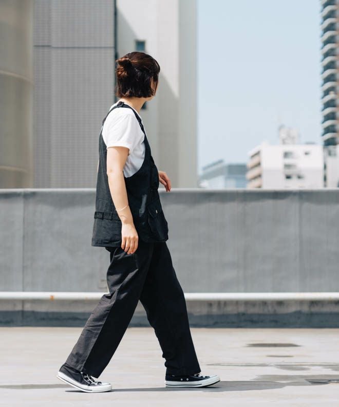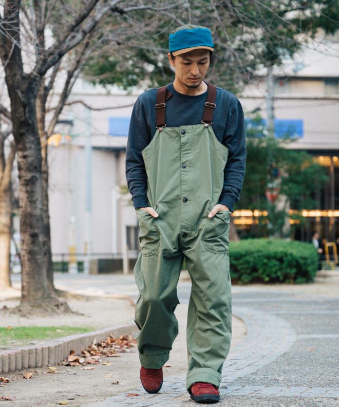 ワイドシルエットのオーバーオール
