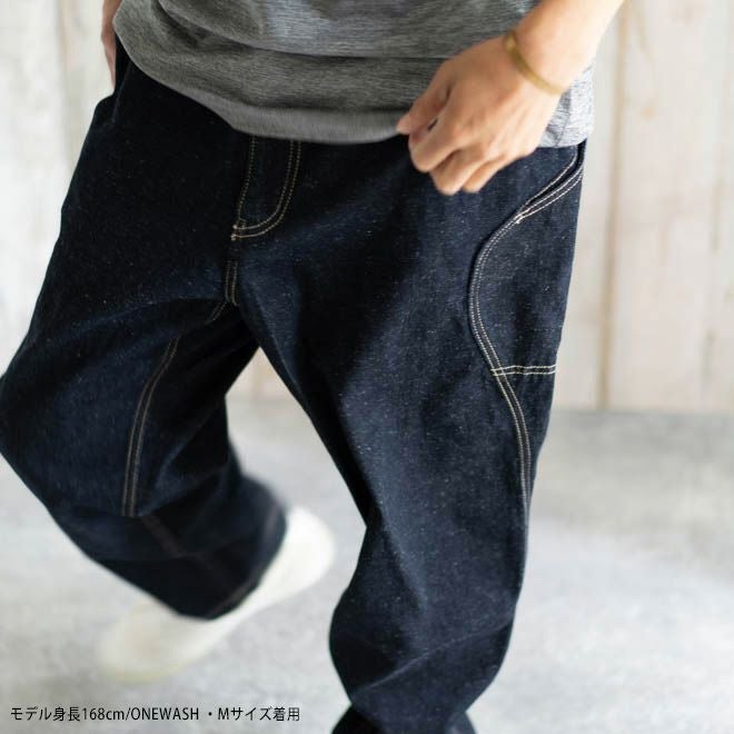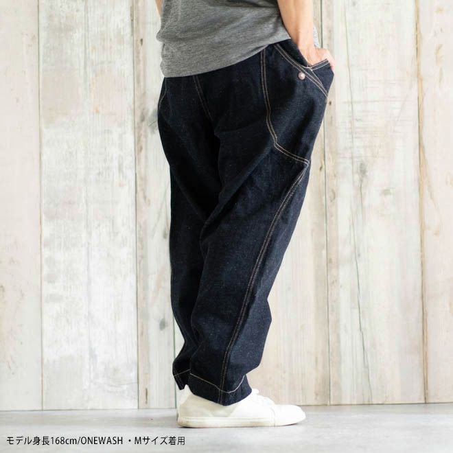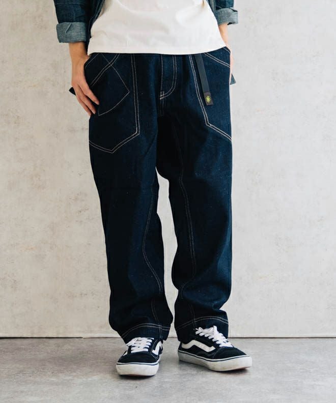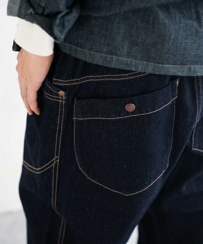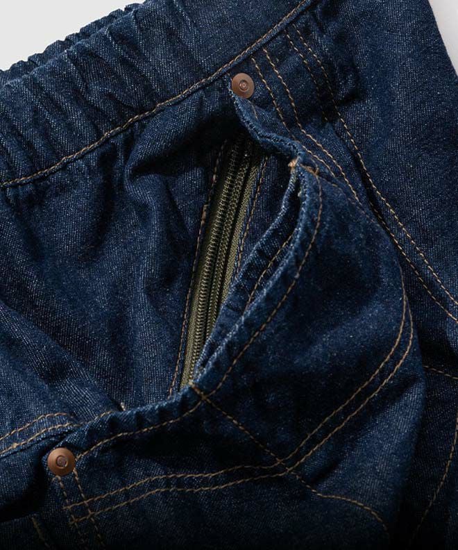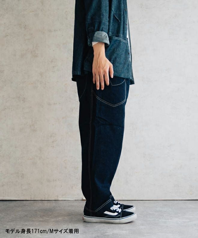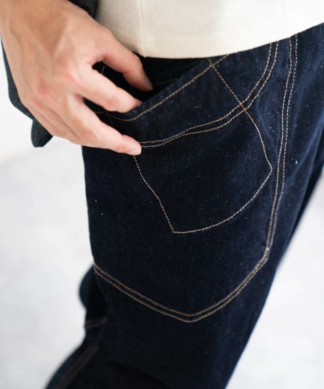 サイドポケットが特徴的なヘンプコットンデニムパンツ