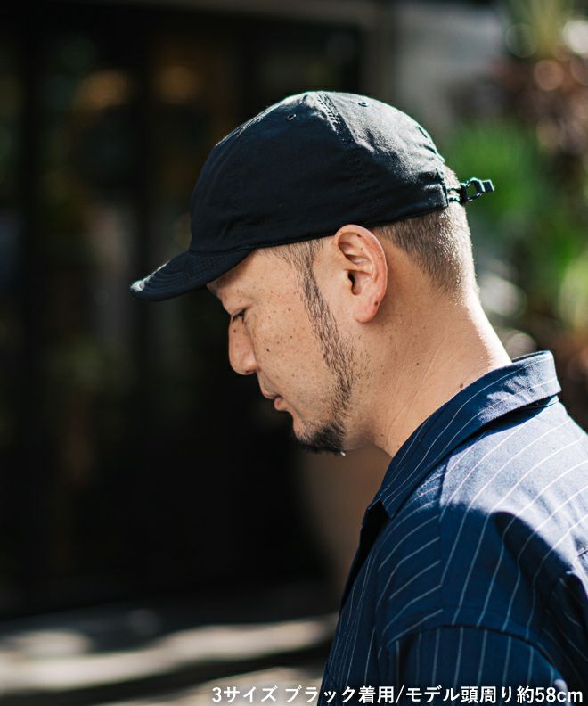また、非常に軽くシワになりにくいイージーケア性に富んだ素材とも合わせているので、アクティブシーンでこそ輝くキャップに。