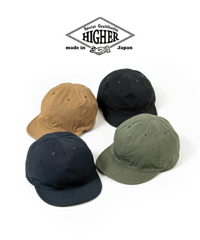 ハイブリッド素材の高密度コーデュラを使って作られた、HIGHERのコーデュラブロークンツイルキャップ。