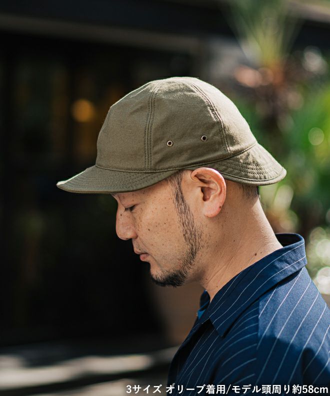 このキャップに使われている生地は、伝統的なM-65フィールドジャケットにも使われたバックサテンを再現しています。