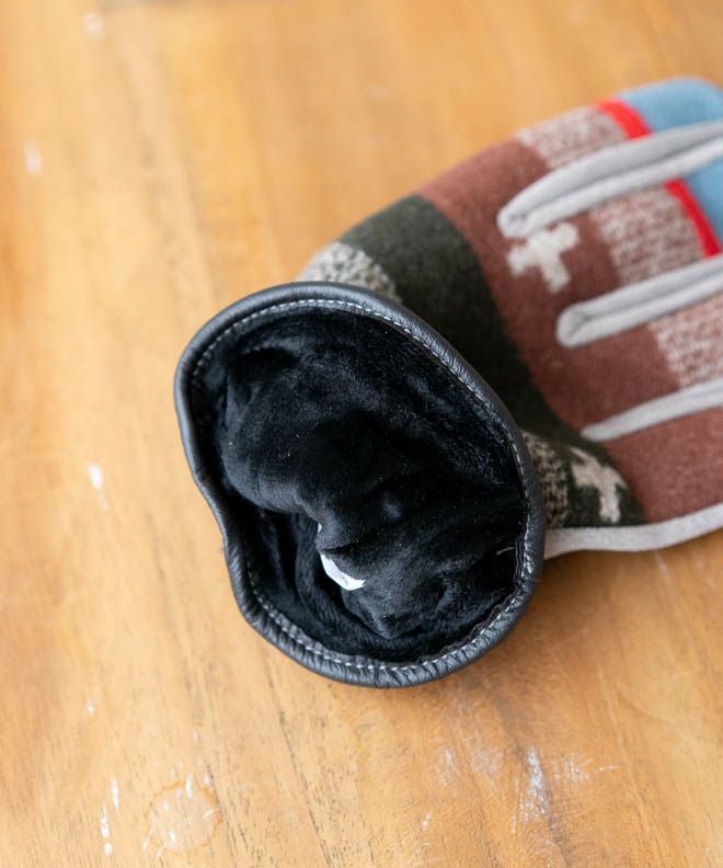 グローブの中はボアのような生地感になっていて肌触りが良く、一度付けたらやみつきに。