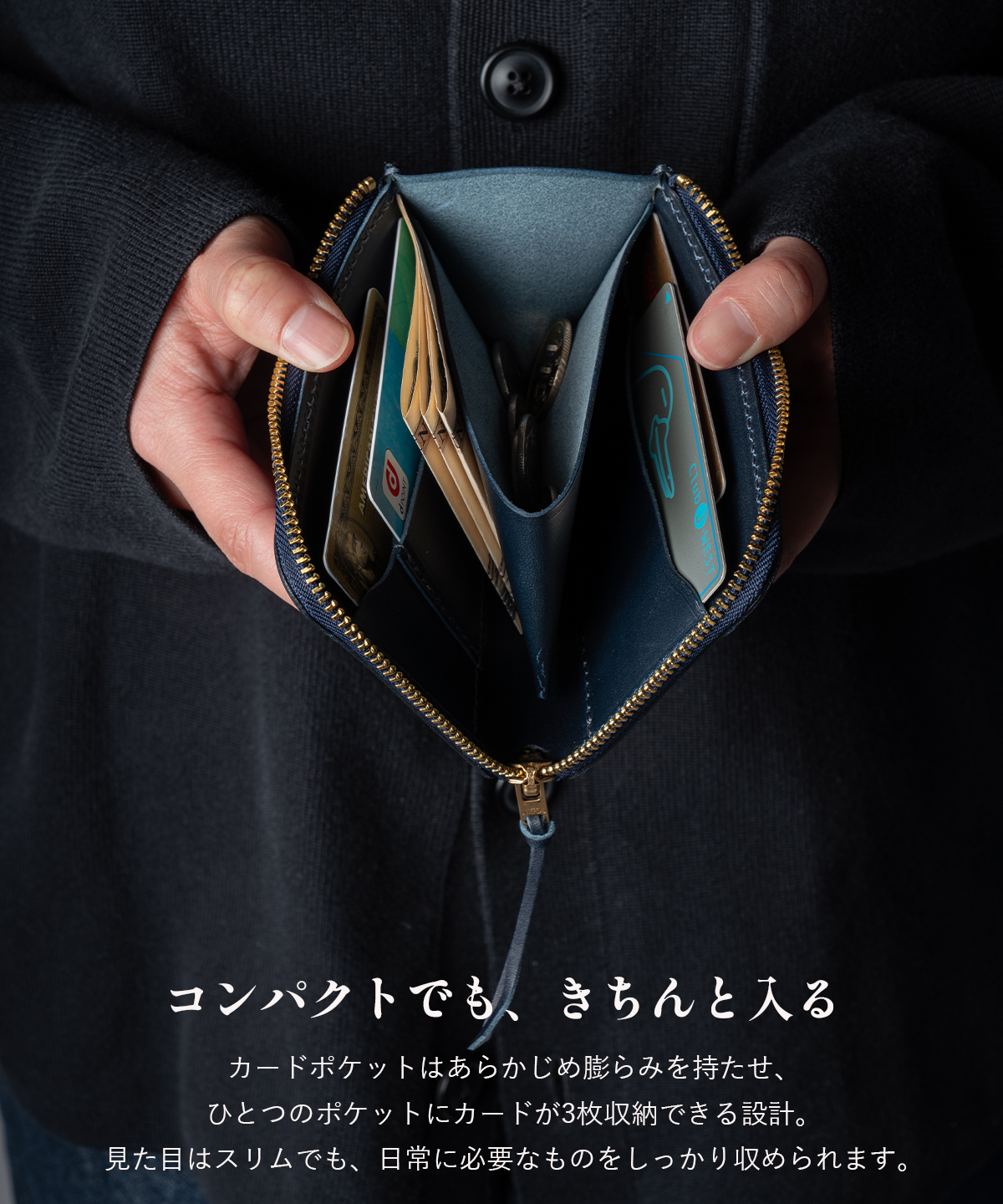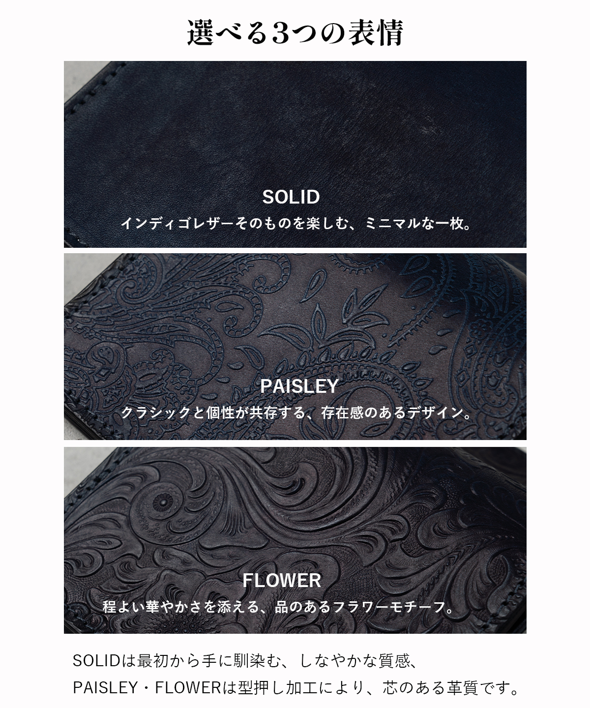 使い込むほどに、完成していく藍の財布。