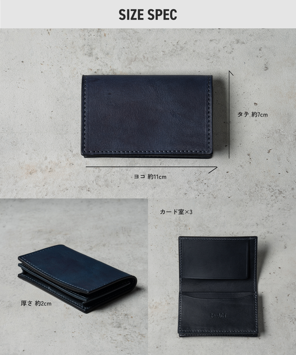 縦:約7cm、横:約11cm、マチ:約1.5cm