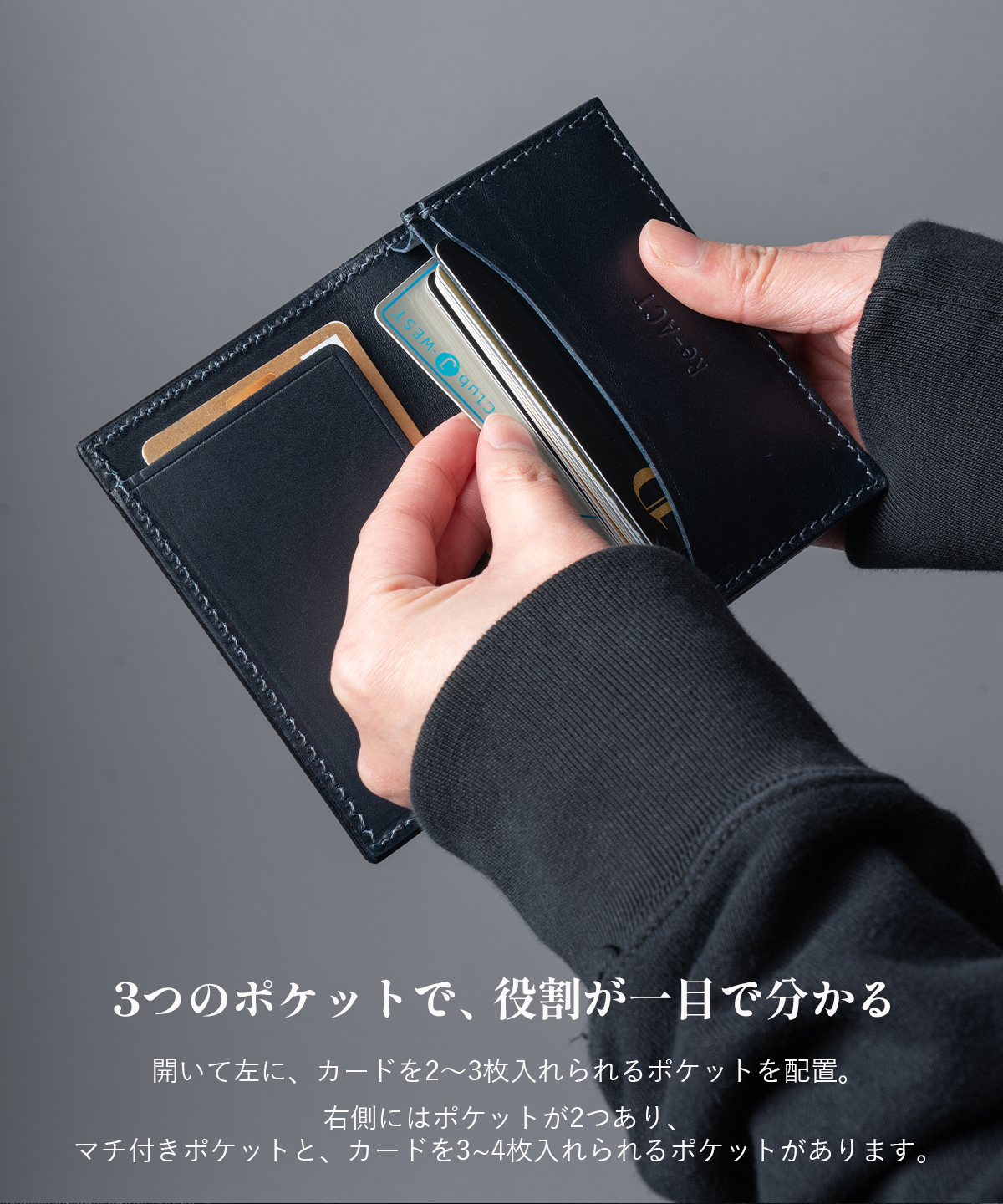 身につけるように使える、3ポケットのカードケース。
