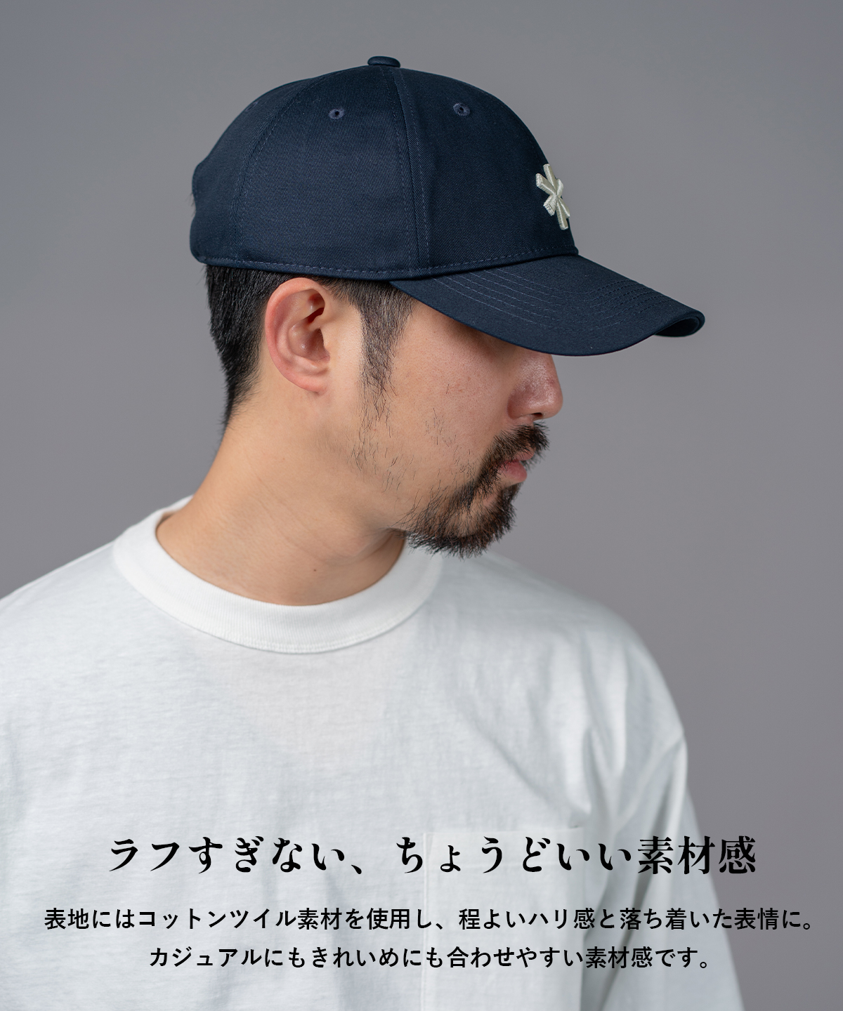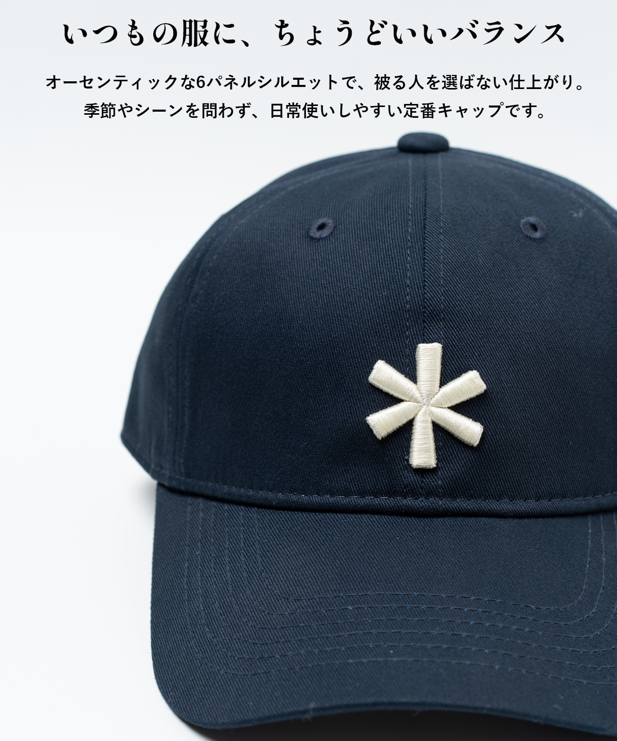 シンプルだからこそ、長く付き合える定番キャップです。