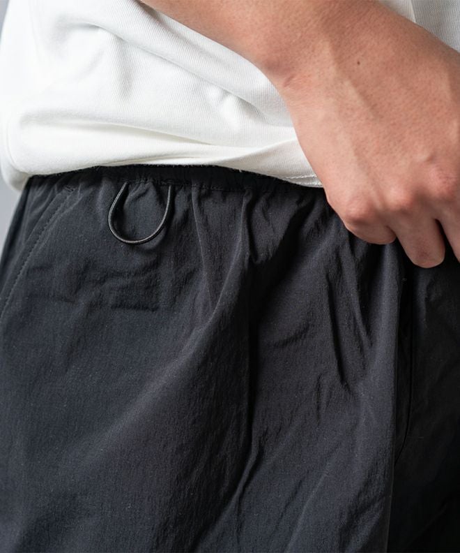 雨を弾く。ストレッチナイロンパンツ。