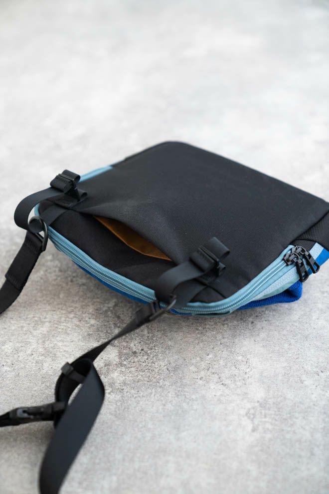 バッグの前面にダウンを封入しており、手を入れ暖められるウォームポケットを配置。