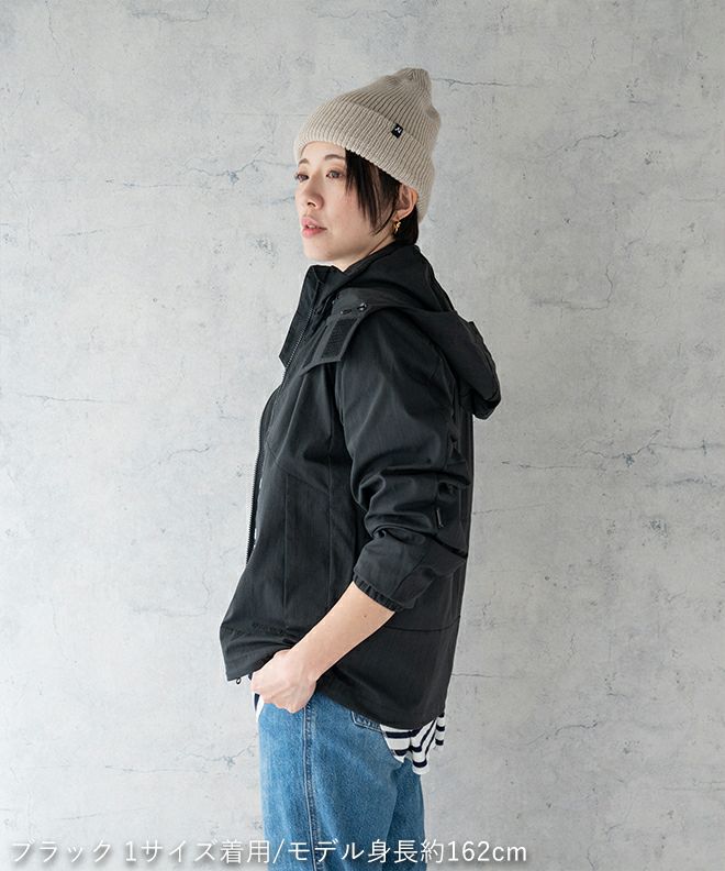 裾とフードはワンアクションで簡単にアジャストできます。